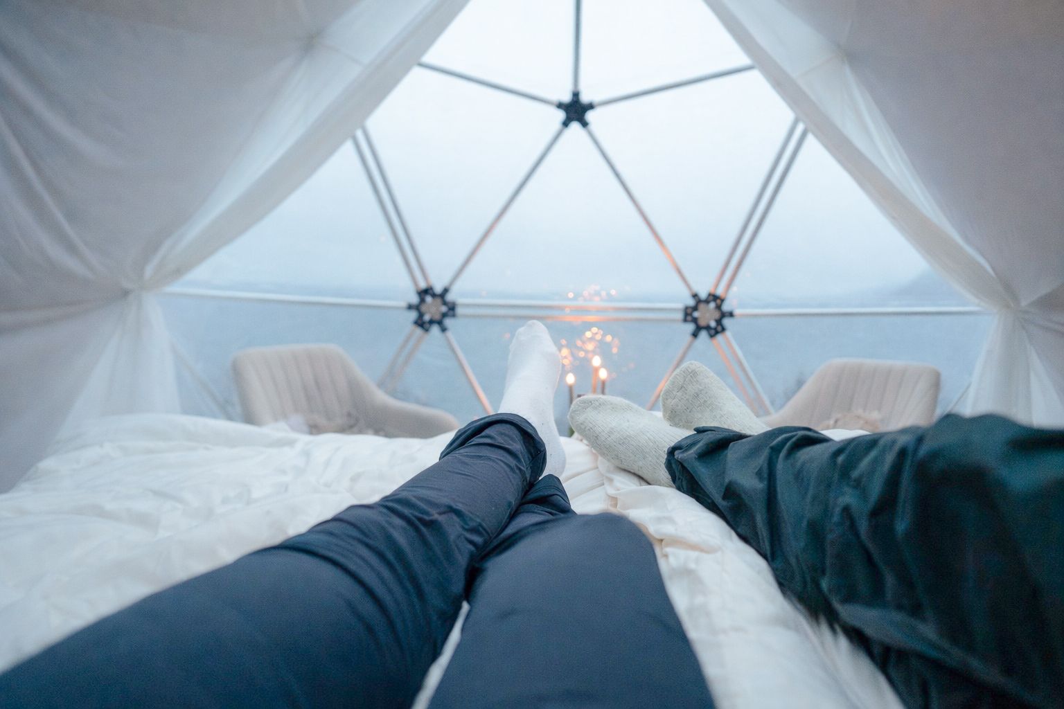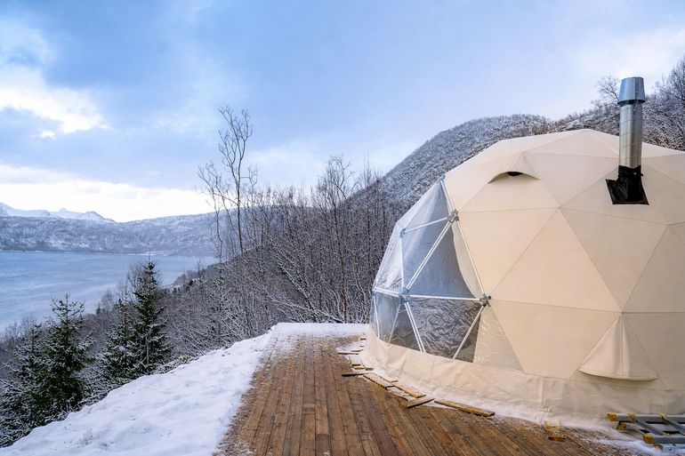 Quinzee is a glamping retreat on Nupen, where the Norwegian wilderness takes centre stage. Our dome put you right in the middle of it — open skies, clean air, and a quietness that's hard to find anywhere else. We believe the best way to experience nature is to sleep in it. So we kept things simple: no unnecessary noise, no distractions. Just you and the landscape, at a pace that reminds you what rest actually feels like